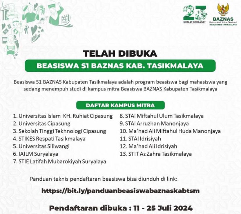 Beasiswa S1 Baznas Kabupaten Tasikmalaya
