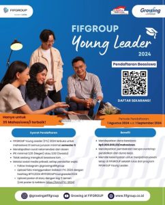 FIFGROUP Young Leader 2024 adalah beasiswa yang dirancang untuk mahasiswa yang memiliki potensi kepemimpinan serta prestasi akademik yang baik. Selain memberikan bantuan dana, program ini juga menawarkan pelatihan kepemimpinan dan pengembangan soft skills yang sangat berguna dalam karier di masa depan.